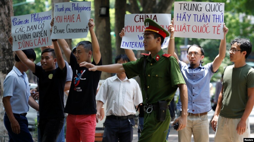 Scores of demonstrators in Vietnam's capital gathered to support an